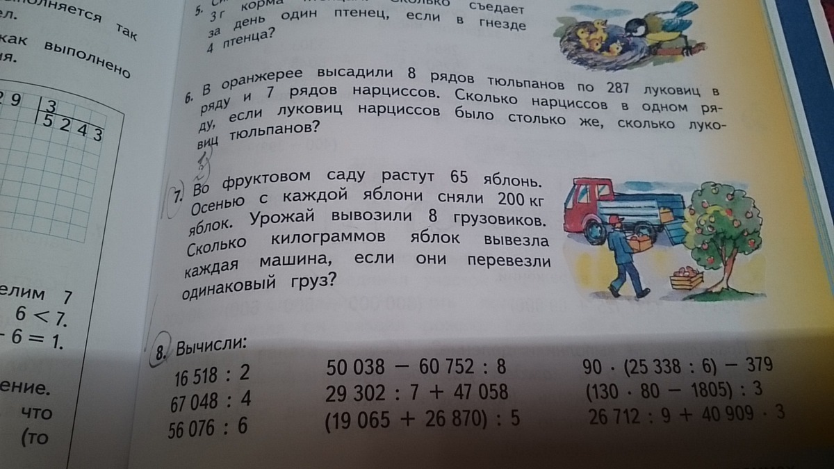 13000:8=1625 кг яблок вывозили в каждой машине