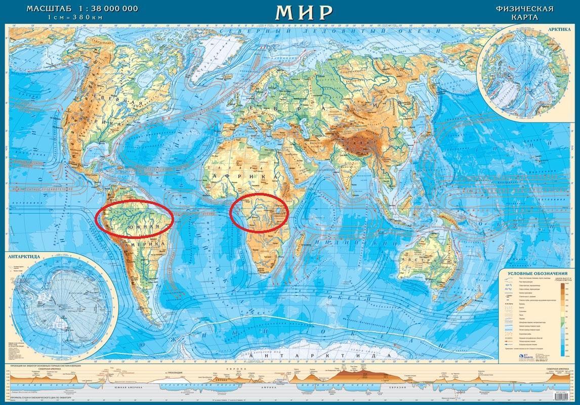 5 Конго дважды пересекает экватор, а Амазонка расположена южнее экватора.