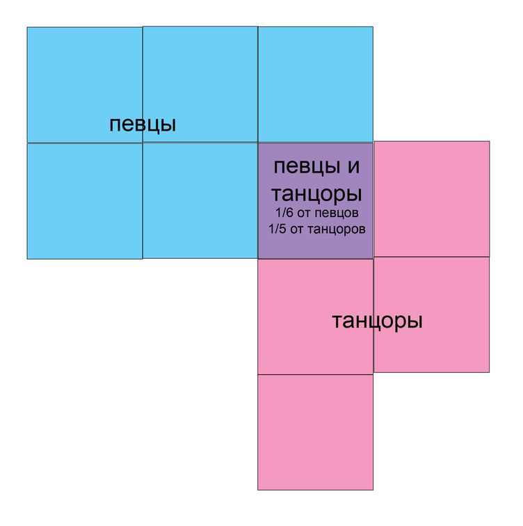 Задача каждый шестиклассник занимается пением или танцами некоторые из них занимаются и пением и танцами 1/6 певцов ходит на танцы а 1/5 танцоров ходит петь.Чем занимается больше детей - пением или танцами?