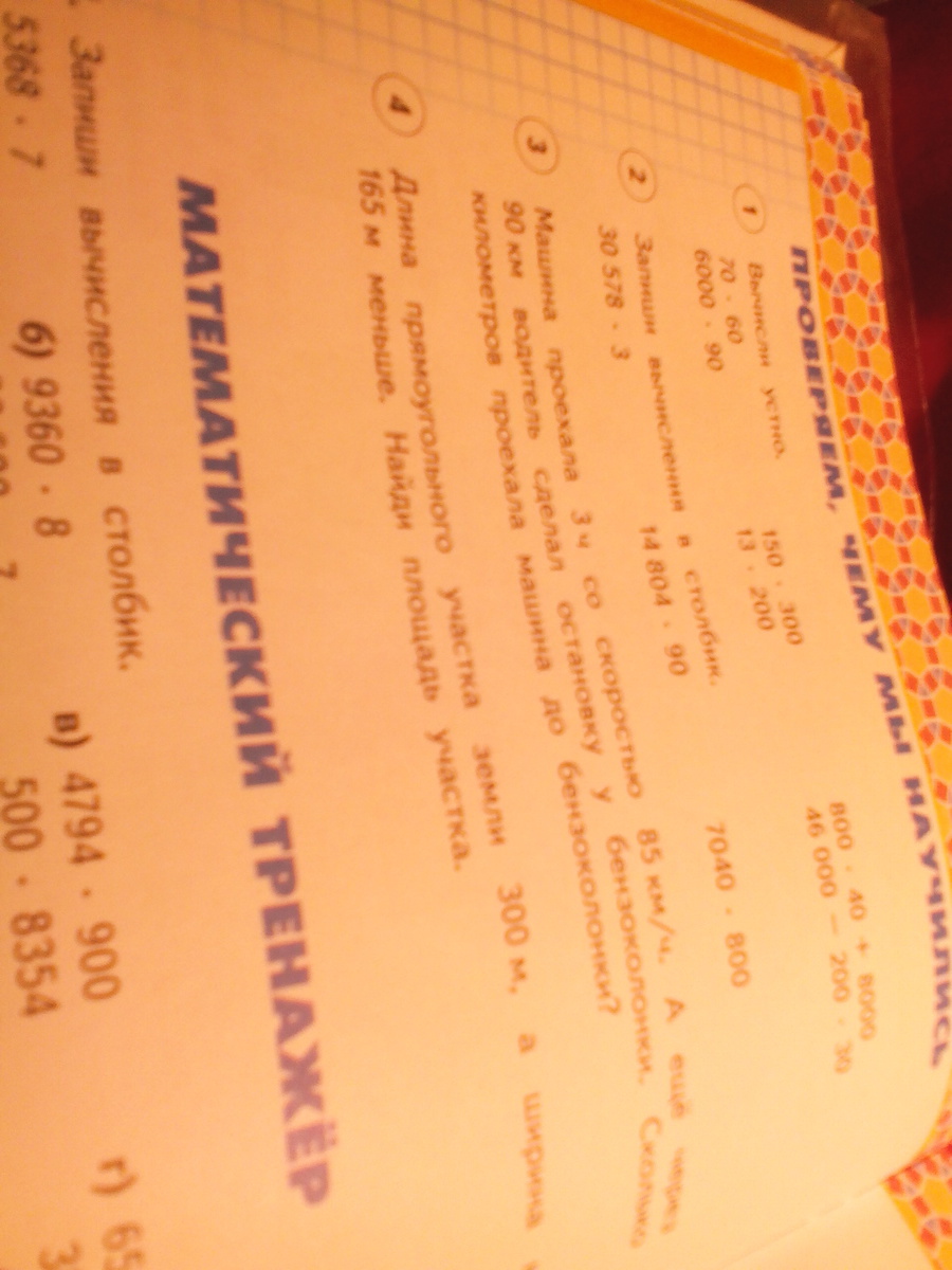 машина проехала 3 часа со скоростью 85 кмч. А ещё через 90 км водитель сделал остановку у бензоколонки . Сколько км проехала машина до бензоколонки? номер 3
