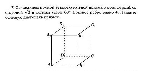 БОльшей диагональю призмы будет AC1 (т.к. в ромбе бОльшей диагональ AC будет)