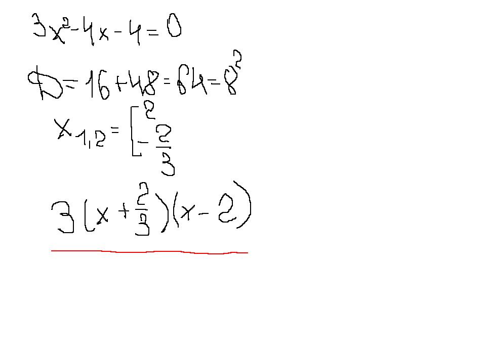 В каком случае представлено разложение квадратного трёхчлена 3x²-4x-4 на линейные множители?