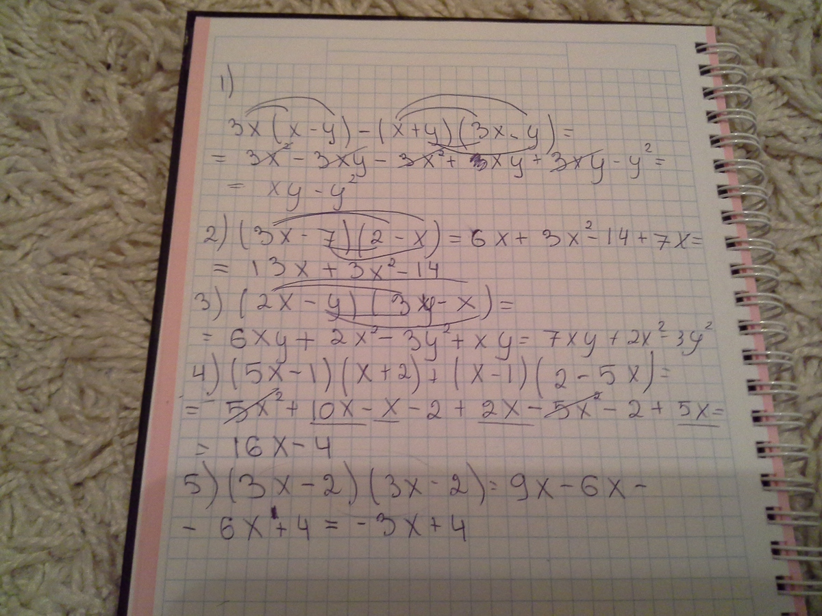 помогите решить 1)3х(х-у)-(х+у)(3х-у)