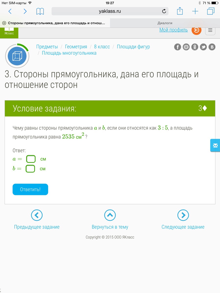 b = 65 (см) a = 0,6*65 = 39 (см)