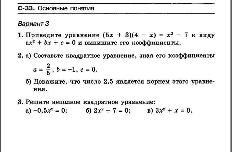 2) a)0.4x^2-x=0 (ax^2 + bx + c = 0- общий вид квадратного уравнения)