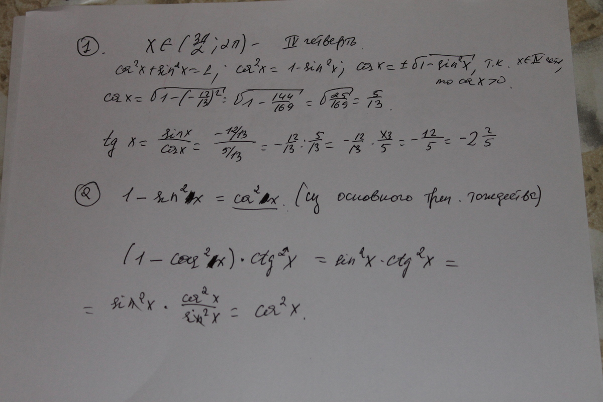 cosx и tgx , если sinx = -12/13 и x принадлежит (3п/2;2п).