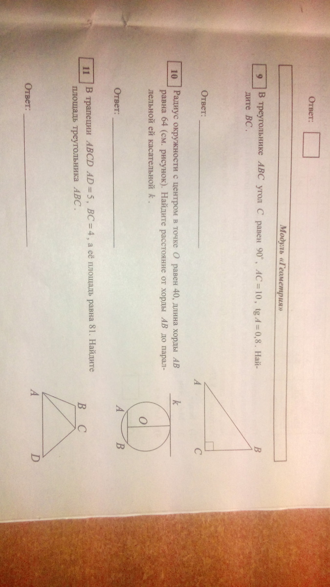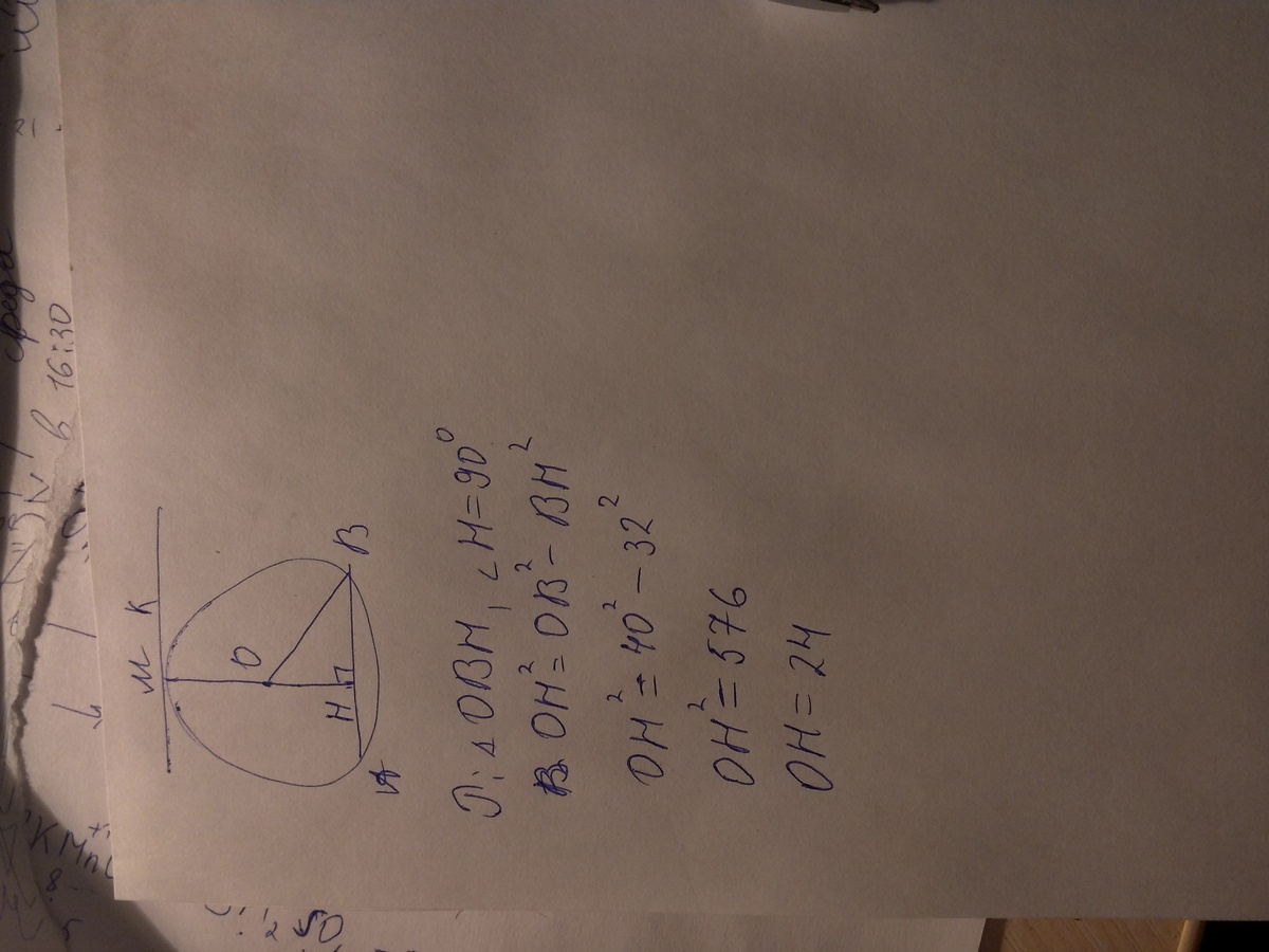 радиус окружности с центром в точке О равен 40,длина хорды АВ равна 64. найдите расстояние от хорды АВ до параллельной ей касательной k. см.рисунок