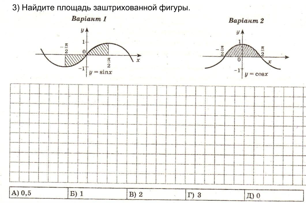 2) Какой из следующих выражений равен площади фигуры, заштрихованной на рисунке: