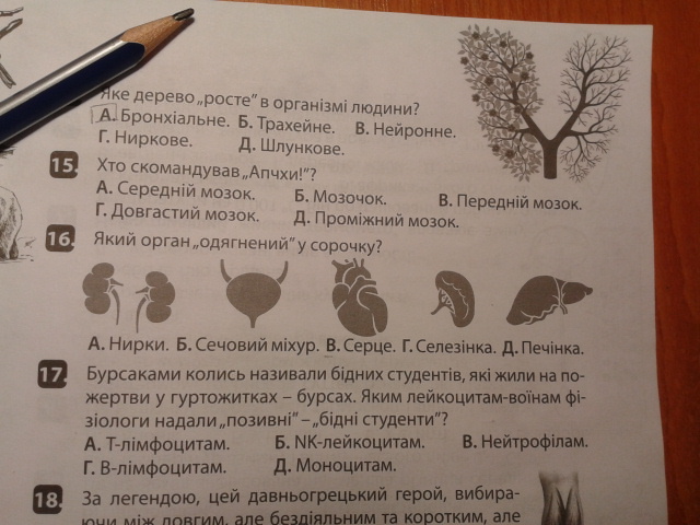 Запитання №16. Який орган одягненний у "сорочку"? Нирки, Сечовий міхур, Серце, Селезінка, Печінка,
