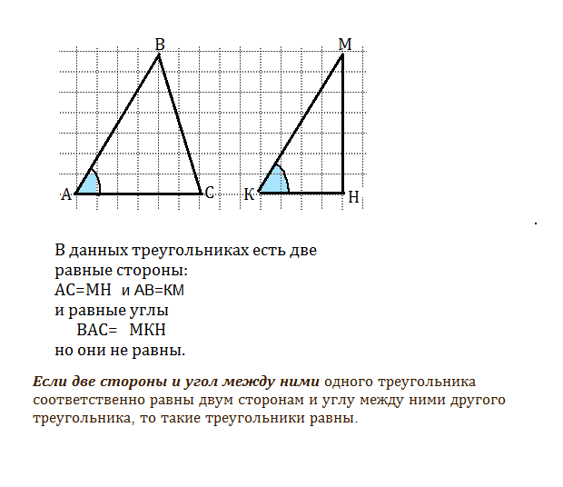 Верно ли что если две стороны и угол одного треугольника равны соответственно двум сторонам и углу другого треугольника то такие треугольники равны