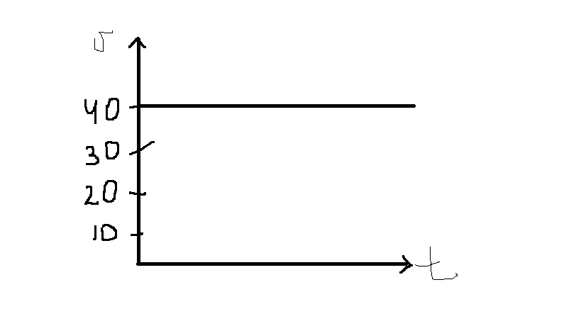 Физическое тело двигается с постоянной скоростью 40 кмч. Начертите график зависимости пути от времени, скорости о времени.Кто-то объяснит мне каааак? 0_0