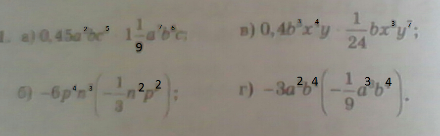 ко 2 картинке....заданию нужно:приведите одночлен к стандартному виду и укажите коэффициент и буквенную часть..