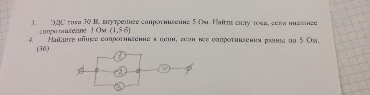 I = ЕДС / (R + r) = 30 / (5 + 1) = 30 / 6 = 5 A (сила тока 5 ампер)