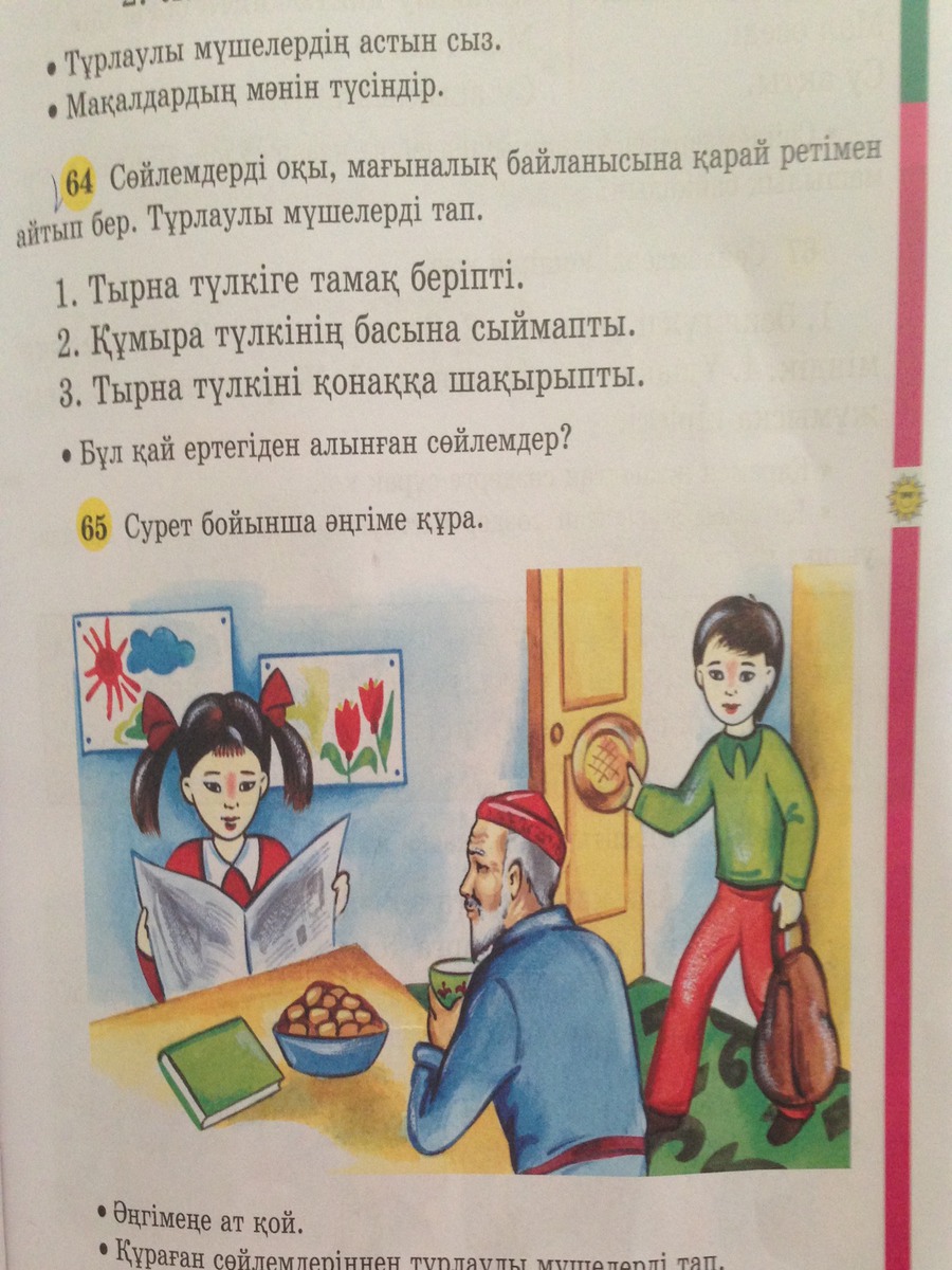 Мен сабақтан келе жатырып дүкенен нан алдым.Атам мен қарындасым мені күтіп отыр екен.