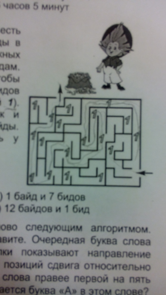 в одной сказочной стране есть собственные денежные единицы: биды в виде монет и байды в виде бумажных купюр, причем 1 байд равен 8 бидам. незнайка прошел по лабиринту так, чтобы собрать наибольшее колличество бидов (на картинке обозначены цифрой 1) после лабиринта он пошел в банк и обменял некоторые монеты на байды. сколько байдов и бидов оказалось у незнайки, когда он вышел из банка? ответы: а) 1 байд и 13 бидов, б) 1байд и 7 бидов, в) 1 байд и 4 бидов, г) 12 байдов и 1 бид