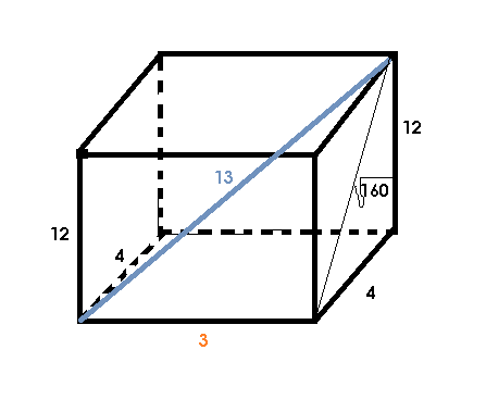 дан прямоугольный параллелепипед два измерения которого равны 4 и 12 диагональ 13 найти площадь его полной поверхности