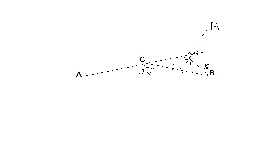 треугольник ABC, BC=6, угол ACB=120 градусов, BM перпендикулярен ABC, BM=3 найти расстояние от M ДО AC