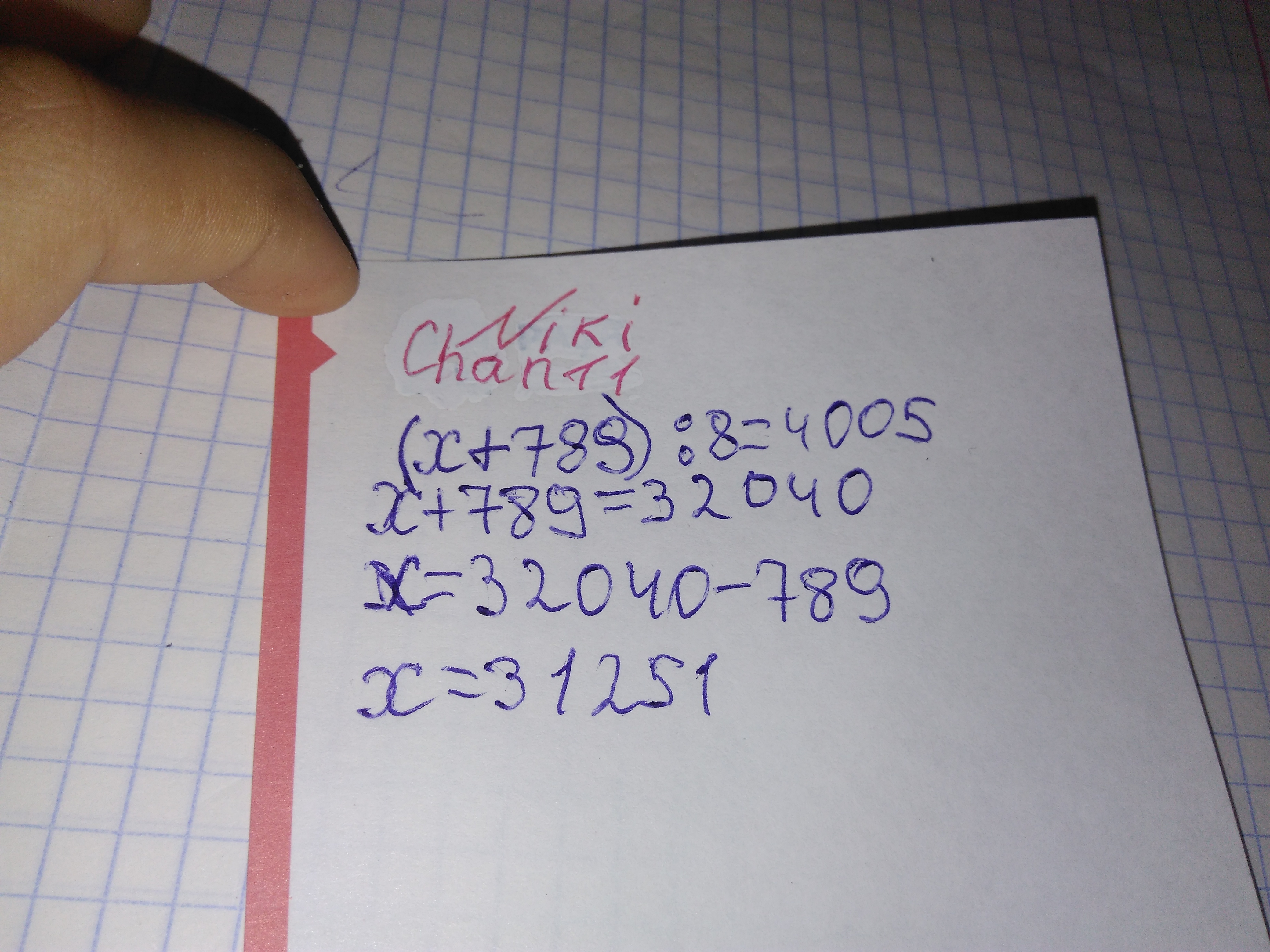 (x+789):8=4005