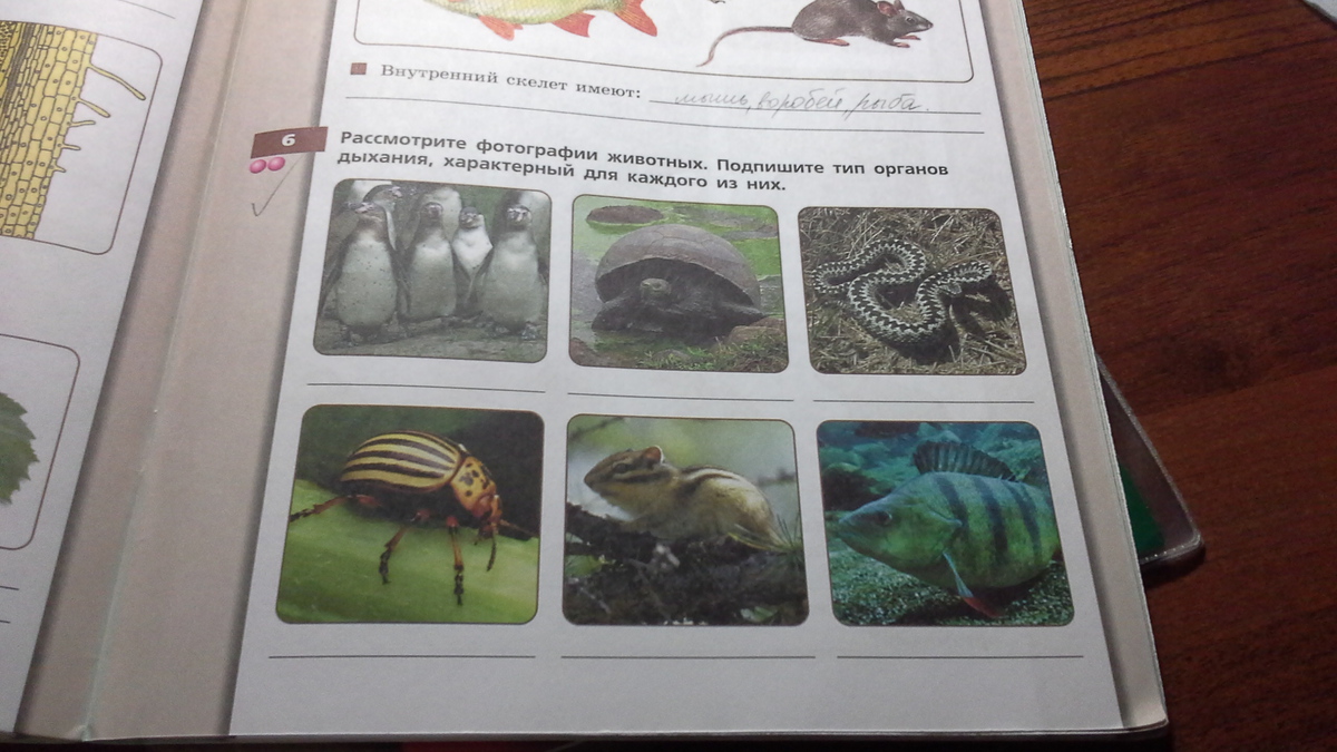 Жабры у рыб,трахеи у жаб и лягушек,у насекомых и животных легкие.