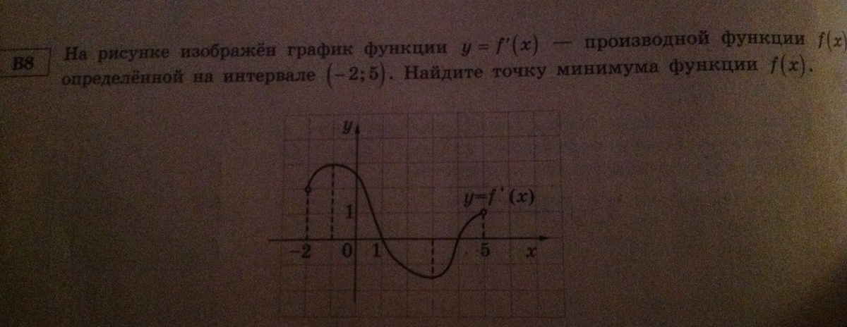 рассмотрим х=1 до этой точки график y=f ' (x) находится выше оси Ох т.е. cама функция f(x) возрастает до точки, а после этой точки график производной находится ниже оси ОХ, т.е. функция убывает. Таким образом в точке х=1 будет максимум.
