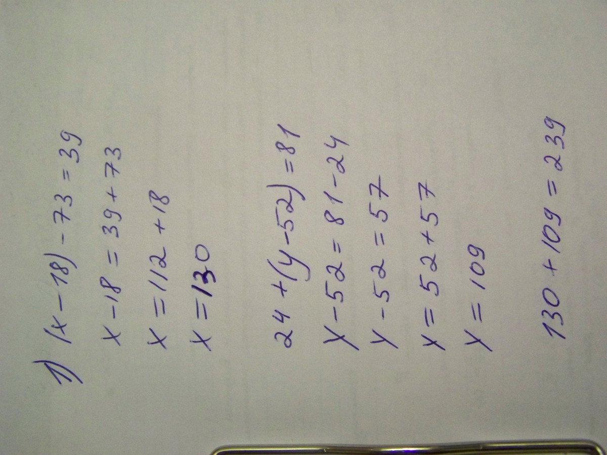 1) (х-18)-73=39 и 24 +(у-52)=81