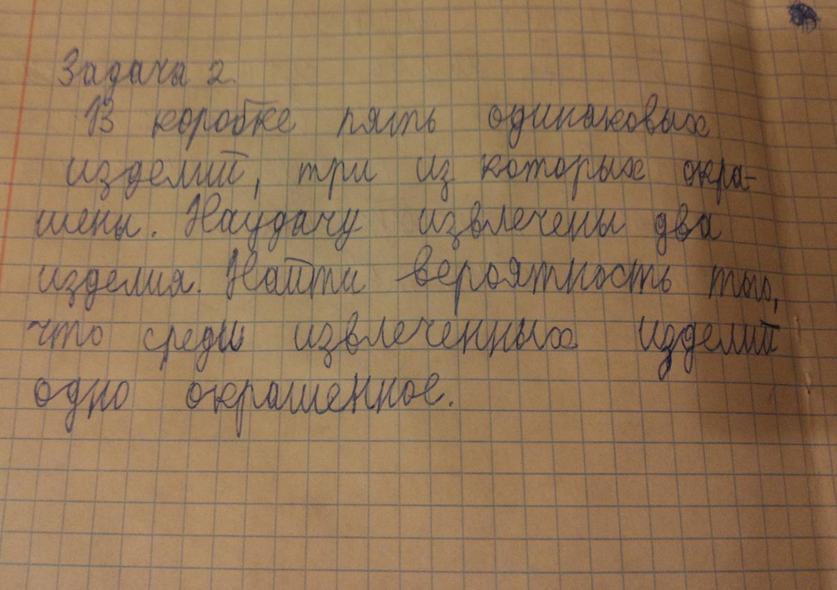 Вероятность вынуть первое неокрашенное изделие 2/5.