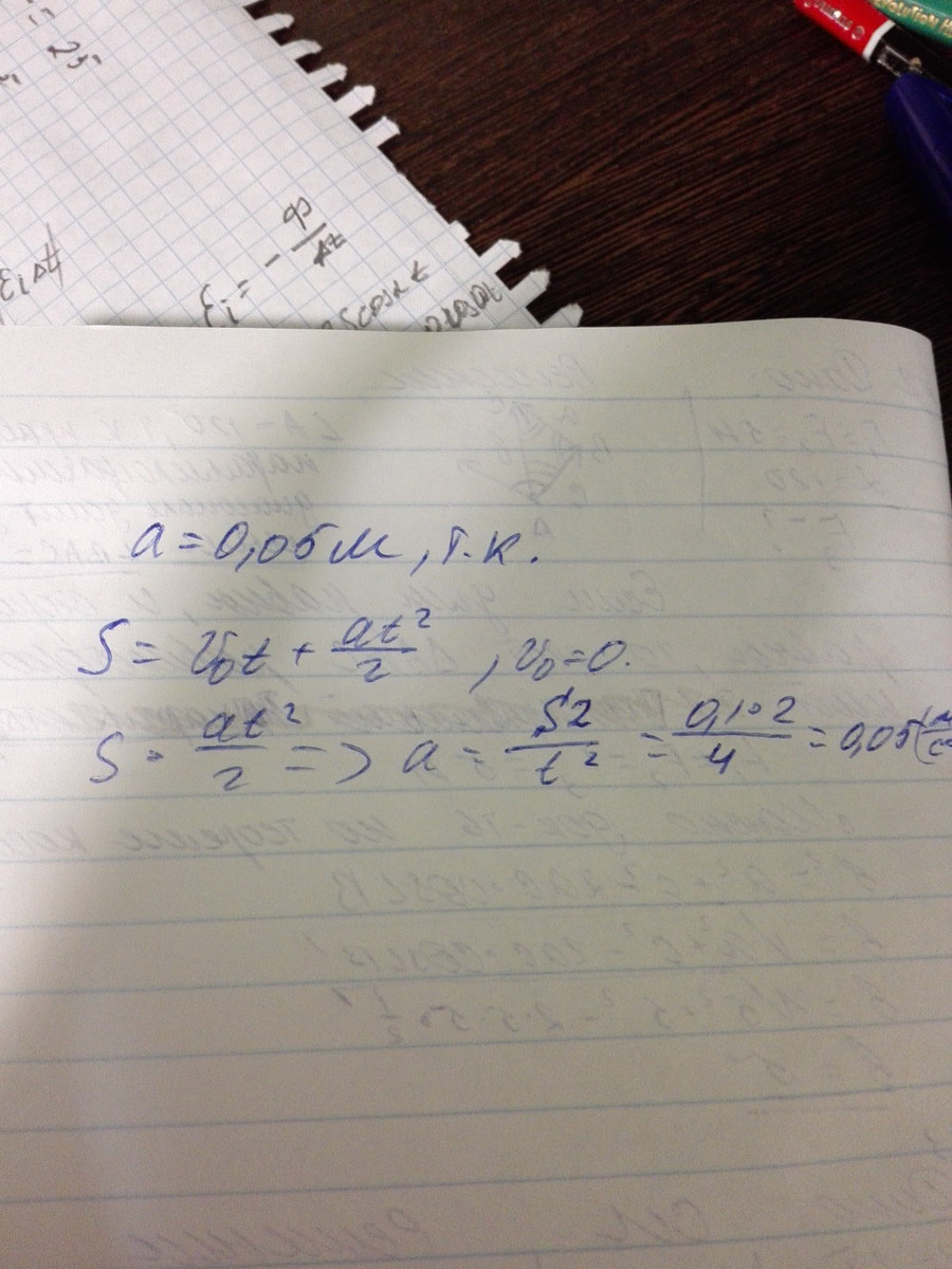 Помогите пожалуйста! Если шарик, лежащий на гладкой поверхности стола в вагоне, при его трогании с места откатился за 2 с на расстояние 10 см, то он начал движение с ускорением 1) 0,5 м / с2 2) 0,4 м / с2 3) 0,05 м / с2 4) 0,1 м / с2 5) 0,025 м / с2