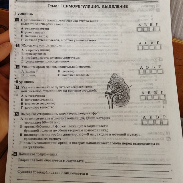 2-б.3-в,4-б. 6-в результате Вторичная моча — жидкость, которая образуется в почках после удаления из первичной мочи избытков воды, ценных для организма минеральных солей и органических веществ. вторичная моча собирается в мочеточники, затем в мочевой пузырь и выводится в окружающую среду.