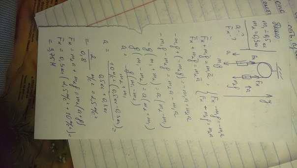 На шнуре перекинутом через неподвижный блок, перемещены грузы массой 0,5 и 0,3 кг