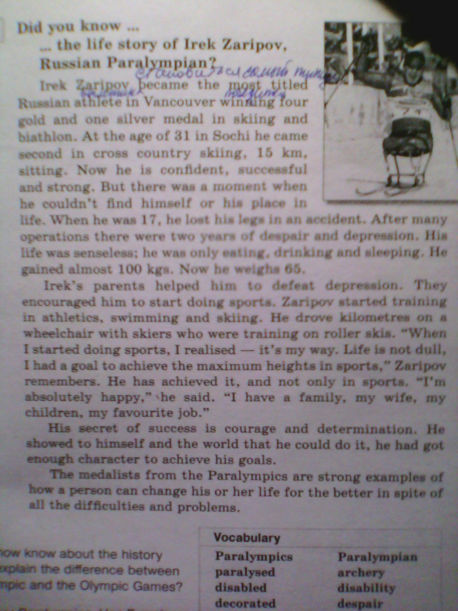 «Когда я начал заниматься спортом, я понял - это мой путь. Жизнь не стала скучной, я достиг максимальных высот в спорте», вспоминает Дзарипов. Он достиг много и не только в спорте. «Я абсолютно счастлив» сказал он. «У меня есть семья, жена, дети, любимая работа»