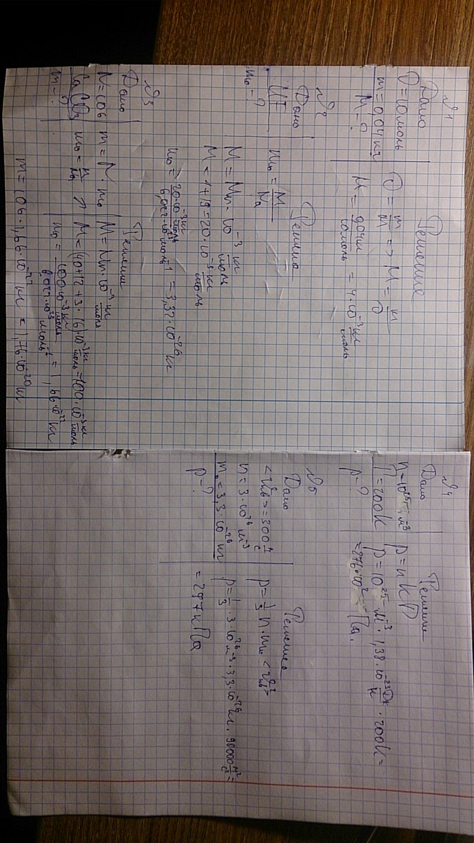 5. Найти давление неона, если средняя квадратическая скорость его молекул 300 м/с, а концентрация молекул 3∙1026 1/м3? Масса молекулы Ne равна 3,3∙10-26 кг.