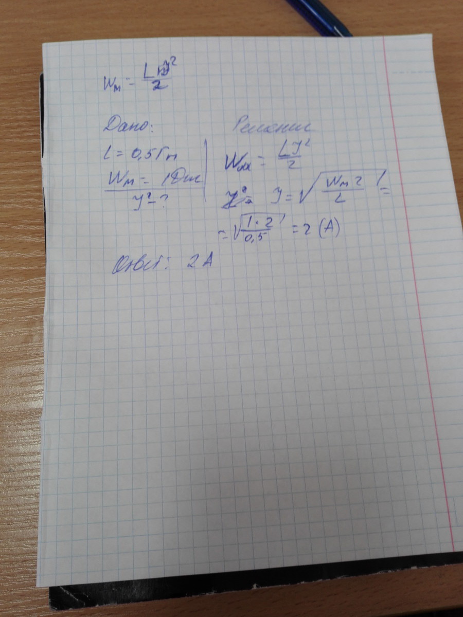 какой должна быть сила тока в обмотке дросселя индуктивностью 0,5Ги, чтобы энергия магнитного поля оказалась равна 1 Дж?