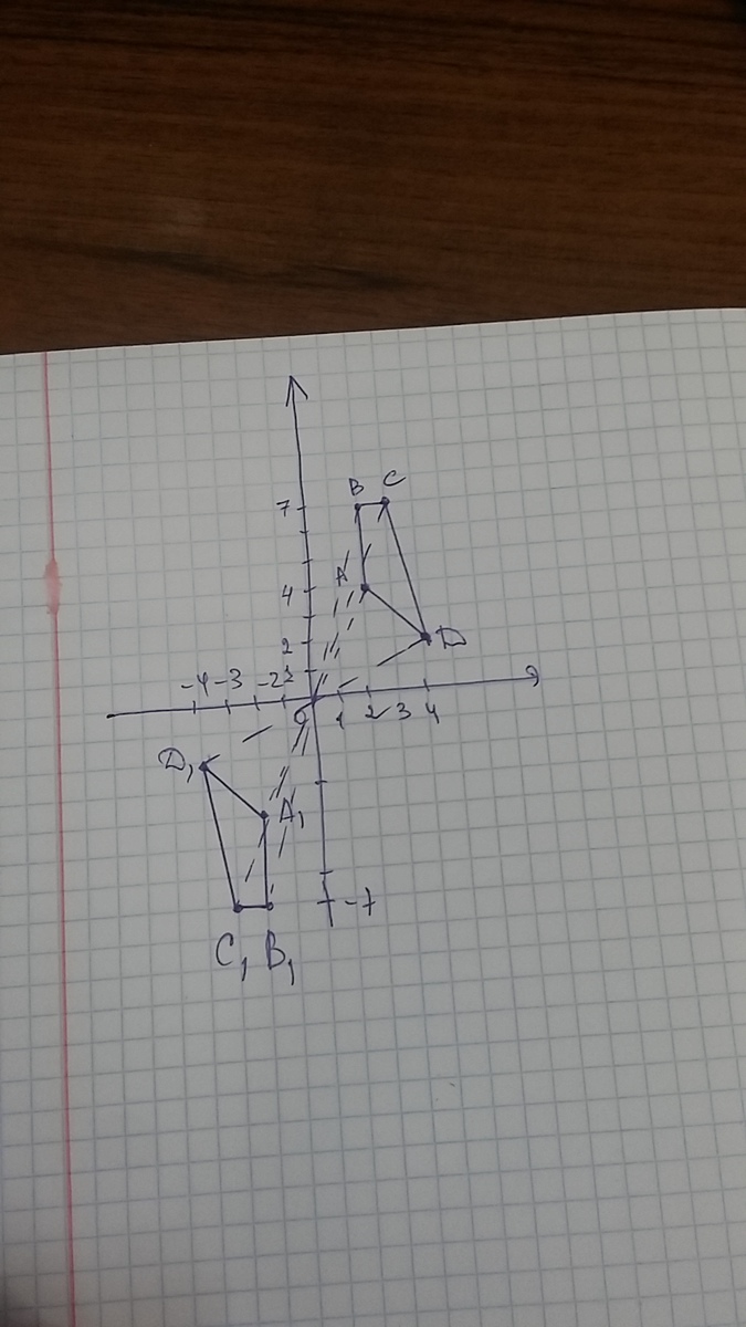 Как построить фигуру на координатной плоскости противоположную относительно начала координат?