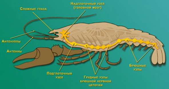 Ведь у высших членистоногих (Arthropoda) узлы брюшной нервной цепочки разделяются на грудные и брюшные (соответственно нервы идут к грудным и брюшным конечностям и внутренним органам).