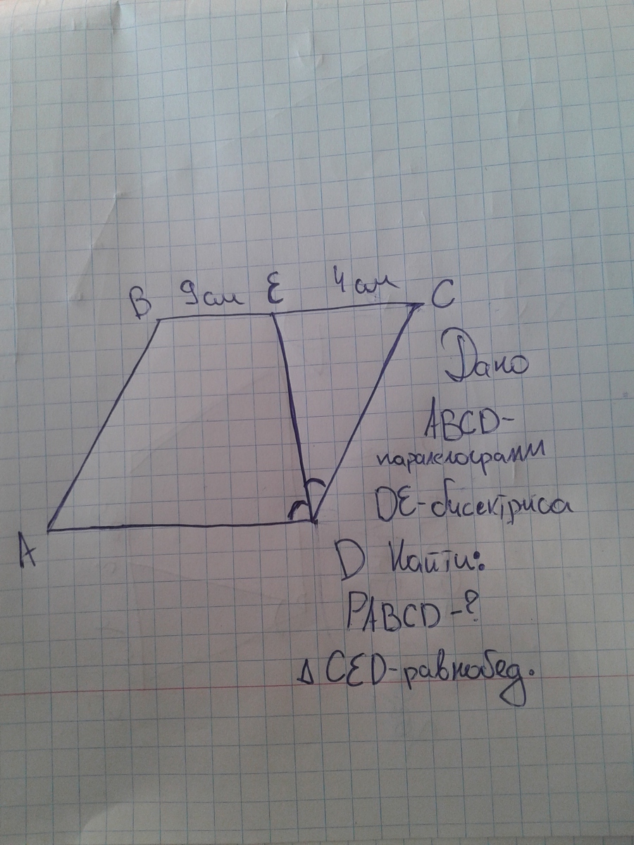 BC=BE+EC=9см+4см=13см по свойству измерения отрезков.