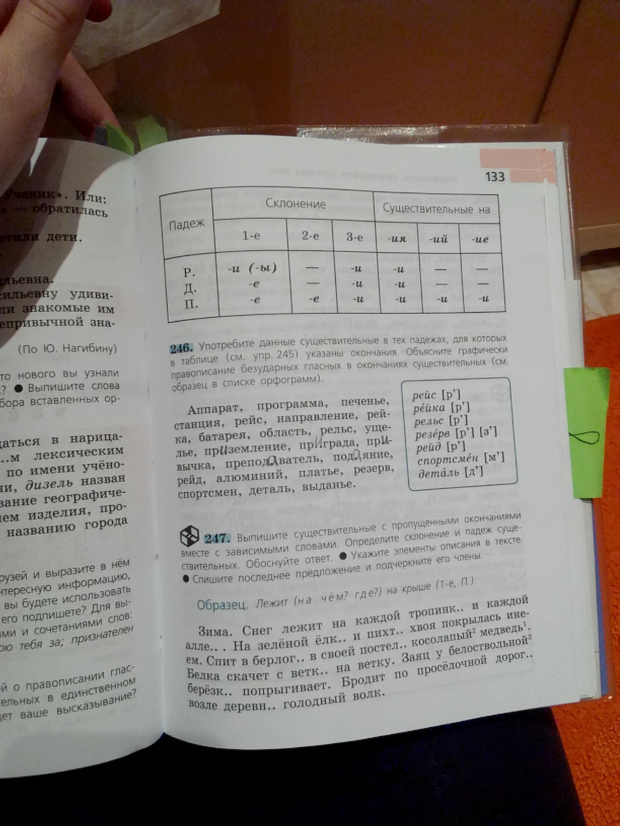 Помогите с 246 номером. Нужно написать эти слова в родительном дательном и предложном падеже.