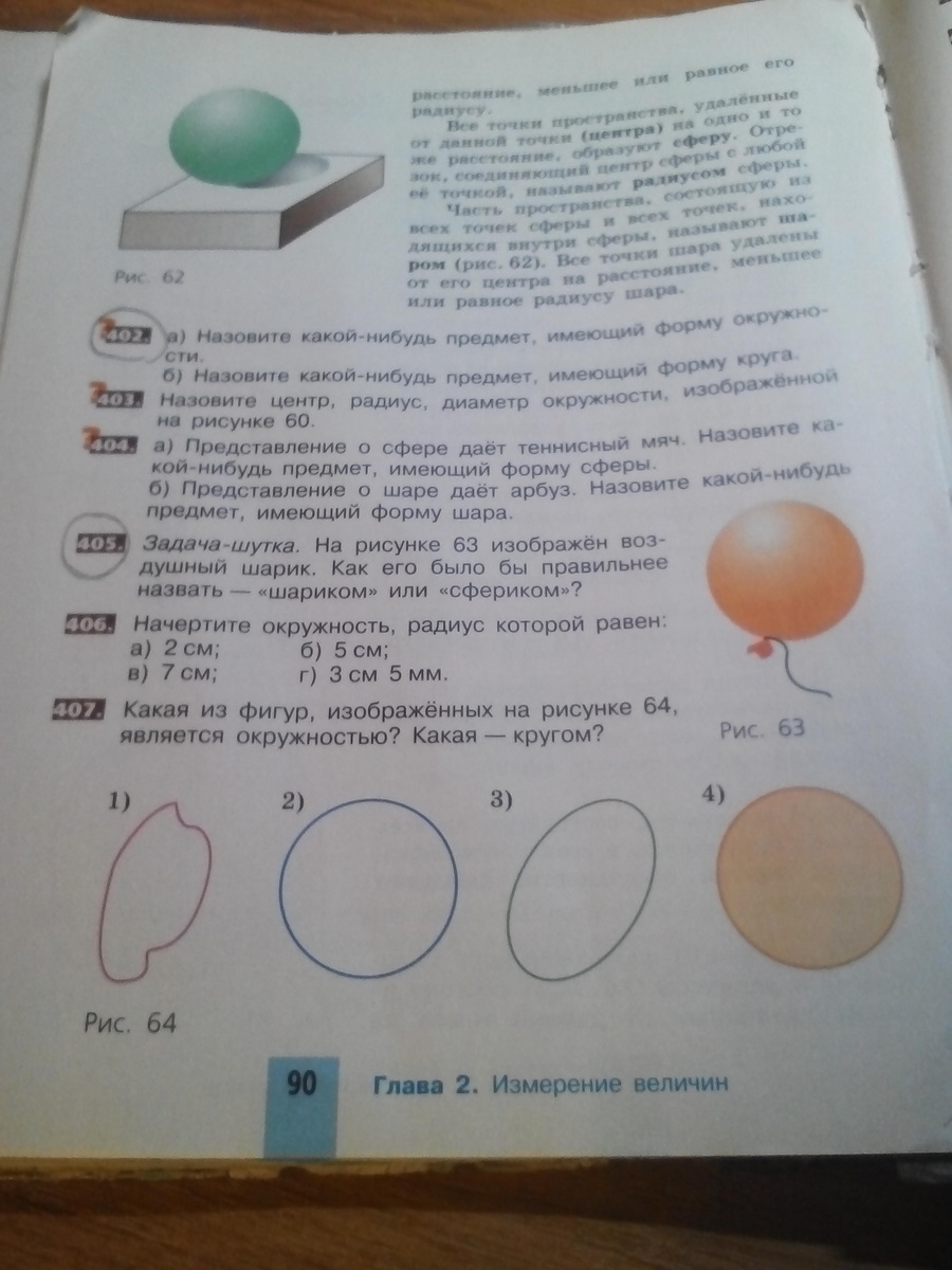 Задача- шутка. На рисунке 63 ( есть на фото) изображен воздушный шарик. Как его было бы правельние назвать шариком или сфериком?