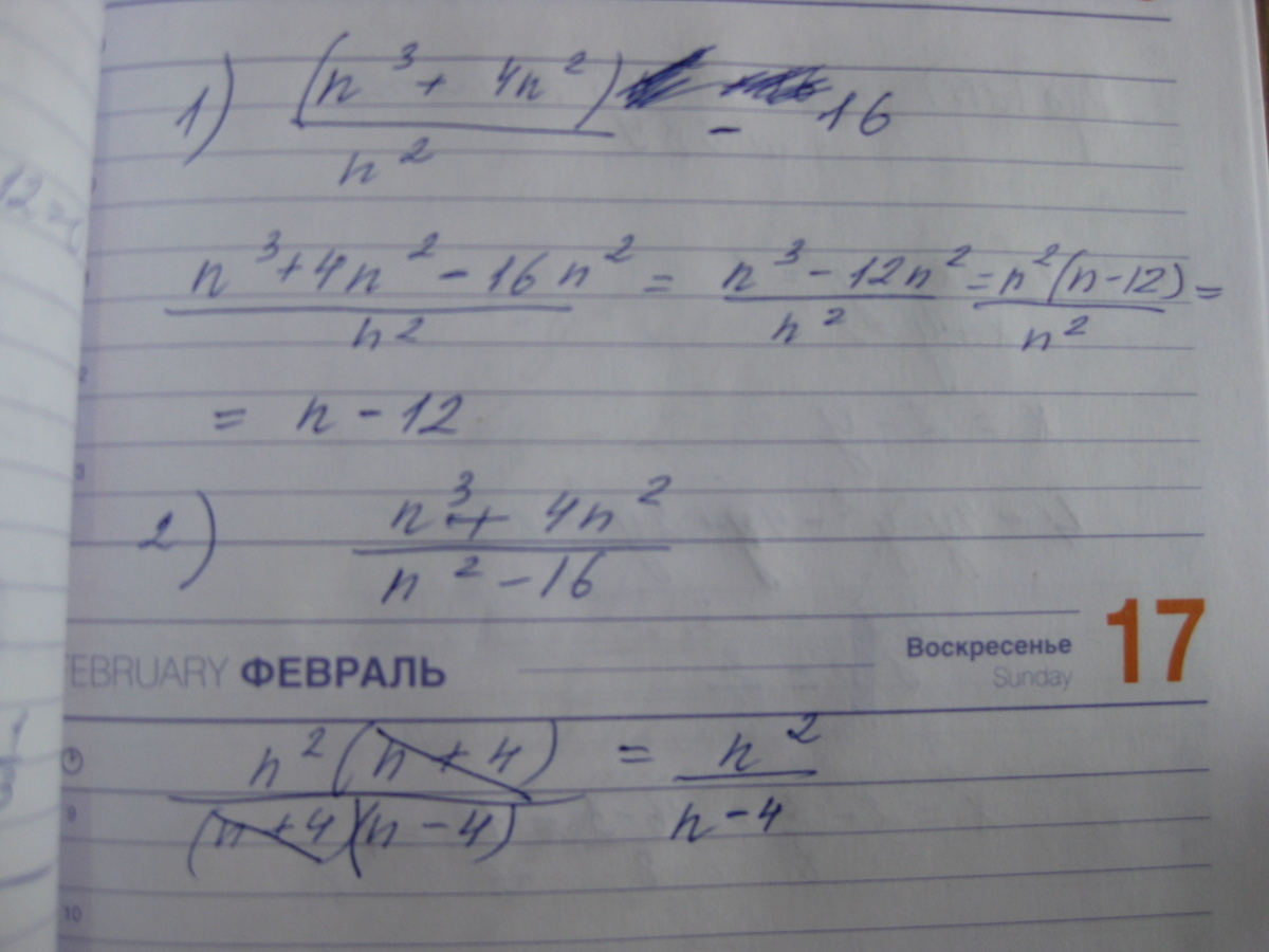 в общем,если ты не ошиблась в записи своего примера,то смотри под пунктом 1решение,а если ошиблась,и на самом деле должно быть(n^3+4n^2)/(n^2-16),то тогда смотри под пунктом 2
