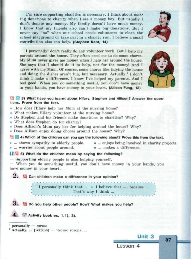 Я лично никак не участвую в волонтёрской деятельности. Но я помогаю родителям по дому. Они часто просят меня помочь с домашними делами. Моя мама никогда не даёт мне за это денег. Она говорит, что я должен делать это всё ради помощи, а не ради денег! И я с мамой согласен. Конечно, такие дела, как уборка дома или мытьё посуды не очень-то интересные, но их необходимо делать. Честно говоря, мне не кажется, что я сильно отличаюсь от других людей. Я знаю, что помог своим родителям. И мне от этого хорошо. Когда ты делаешь что-то хорошее, пусть ты не держишь деньги в руках, зато они у тебя в сердце.