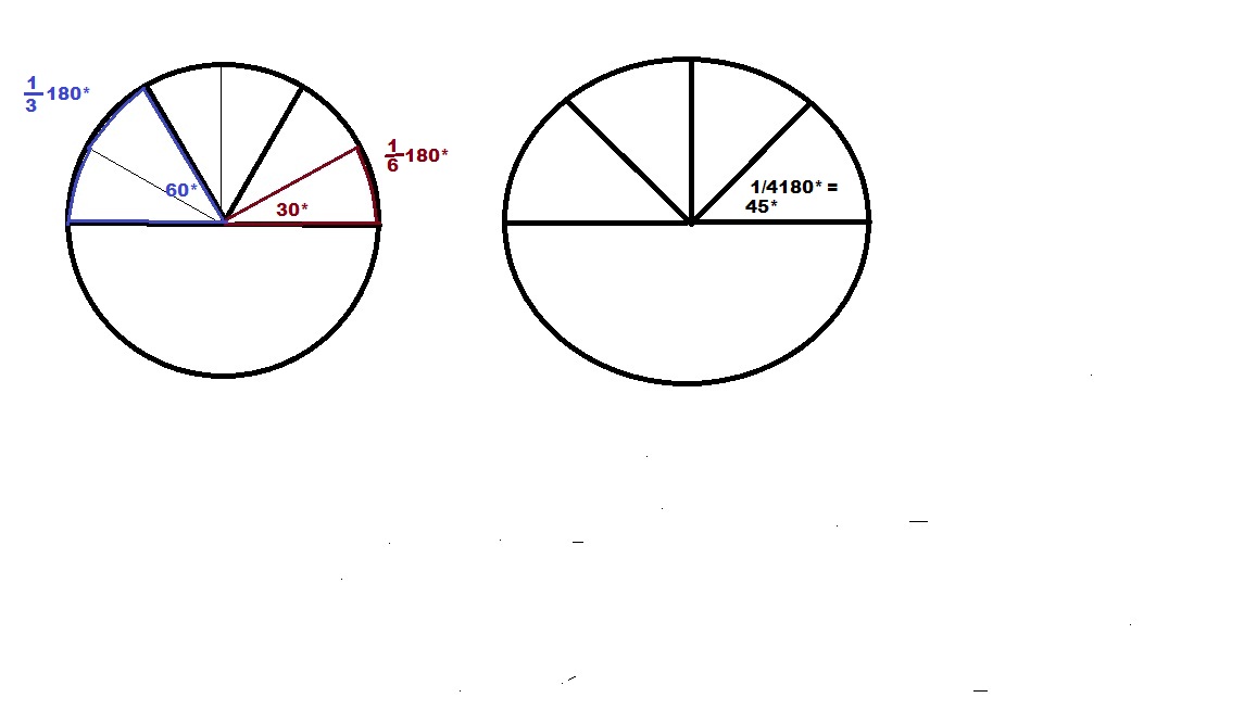 полуокружность разделена на: 1) 3; 2) 4; 3) 6; 4) 18 равных частей. Найдите градусную меру каждой дуги и центрального угла, соответствующего этой дуге.