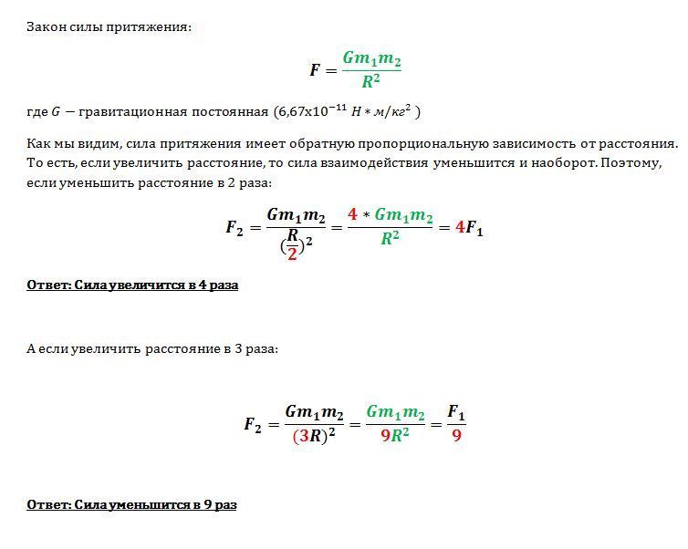 Как изменится сила притяжения между двумя однородными шарами, если расстояние между их центрами уменьшить в 2 раза? увеличить в 3 раза?