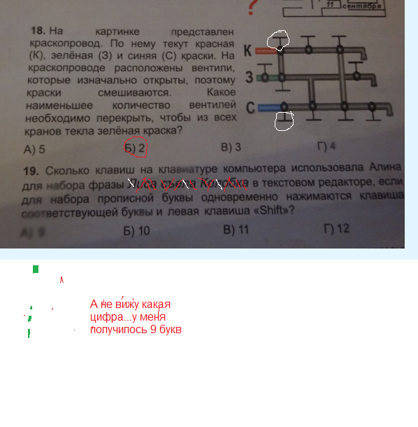 краны (18 задание) перепроверьте за мной....и в 19 задании если под А цифра 9...то точно 9
