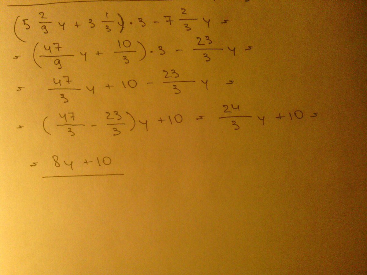 (5 2/9y + 3 1/3)*3 - 7 2/3y