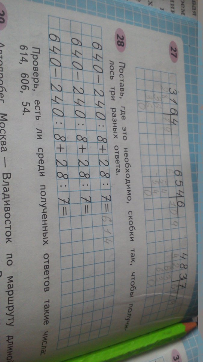 поставь где это необходимо скобки так чтобы получилось три разных ответа проверь есть ли среди полученных ответов такие числа 614, 606, 54