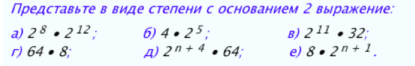 в) =2¹¹ * 2⁵= 2¹¹⁺⁵ = 2¹⁶