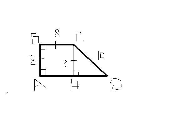в прямоугольной трапеции меньшее основание и меньшая боковая сторона равны 8 см, а большая боковая сторона 10 см. найти площадь трапеции. помогите оч срочно надо..((((