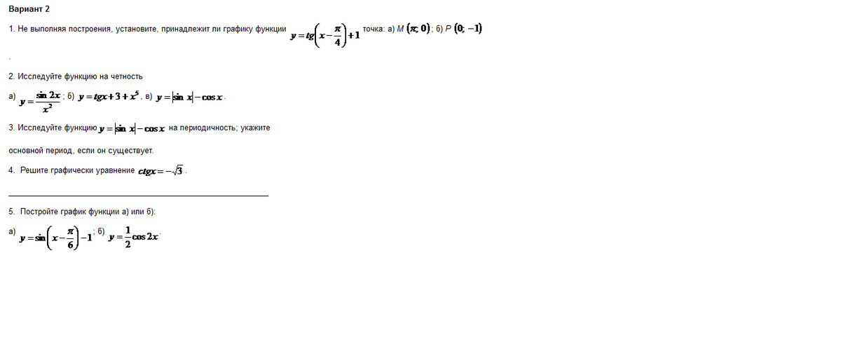 1)точка М принадлежит,точка Р не принадлежит;2)чтобы проверить на четность или нечетность нужной в данной функции вместо х подставить -х,