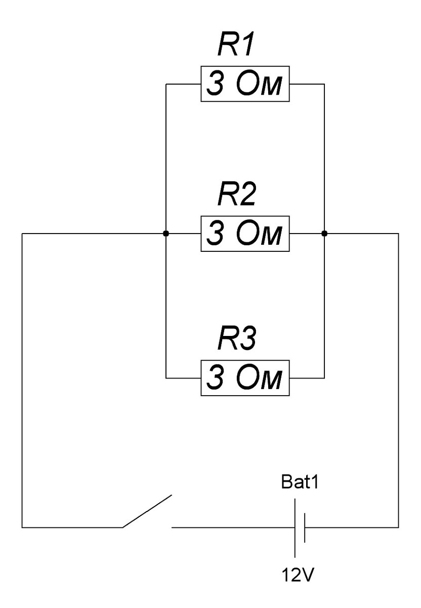 Имеются три нагревательные спирали с электрическим сопротивлением 3 Ом каждая и источник постоянного тока напряжением 12В. Нужно подключить эти спирали так, что бы получился нагреватель с наибольшей мощностью. Нужно нарисовать схему и рассчитать за какое время такой нагреватель нагреет воду массой 0,5 кг от 28 градусов Цельсия до кипения. Удельная теплоемкость воды 4200 Дж/кгС