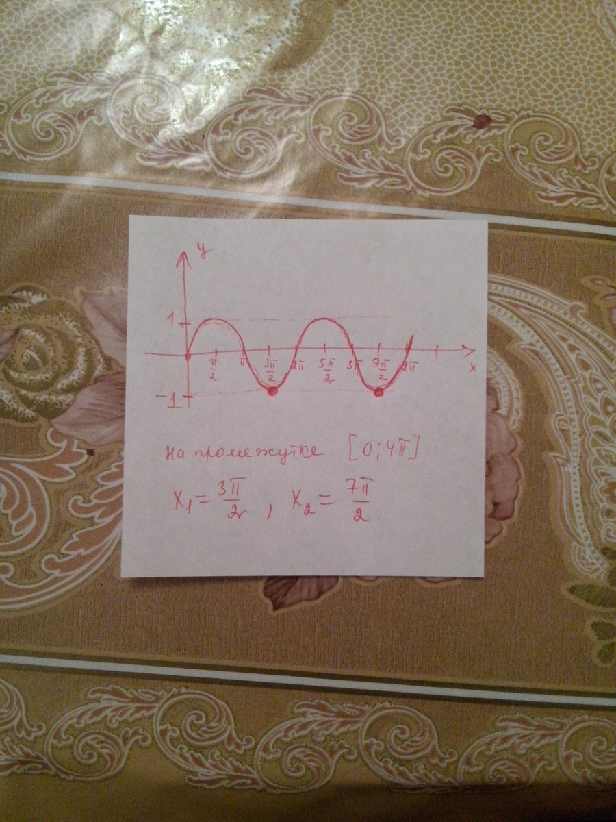 период функции равен 2п,поэтому здесь нужно найти корни двух одинаковых графиков у=sinx от о до 4п,я покажу на рисунке корни отмечены точкой