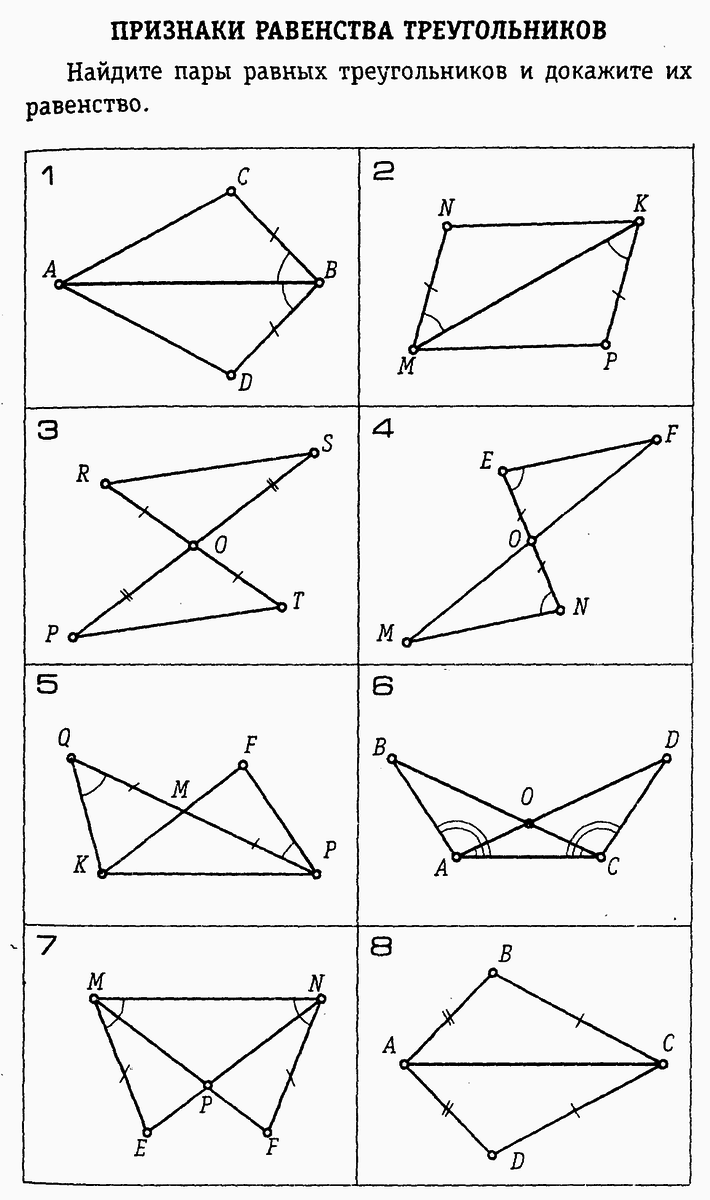 найдите пары равных треугольников и докажите их равенство таблица 3